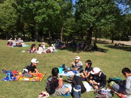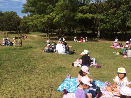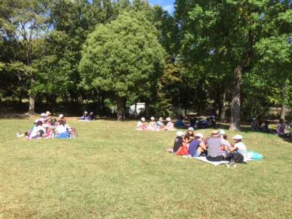 中学年のお昼ご飯の様子です。会話もはずむし、お弁当もおいしいし、緑に囲まれているし、みんな気持ちよさそうですね!