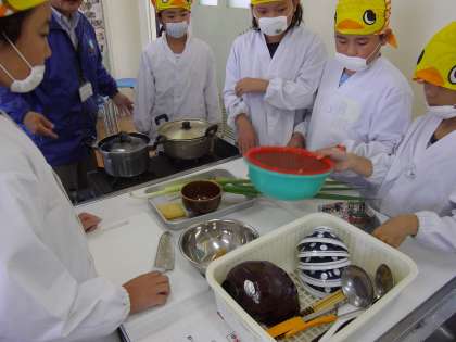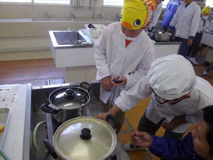 本日、5年生の調理実習がありました。大阪ガスより出前授業として調理実習の指導をしていただきました。今回のテーマは「エコな調理実習」です。ごはんと味噌汁をつくりましたが、ほとんど生ごみを出さない調理でした。例えば、味噌汁の出汁ををとったカツオ節を再利用しごはんのおかずにしていました。子どもたちは、ほとんど生ごみを出さずに調理を終えていました。「おいしー」という声がたくさんきかれました。