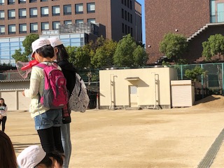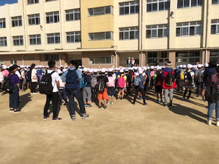 全校児童が集合してルール説明などを行いました。いよいよ出発です。