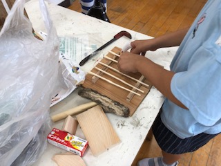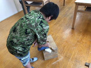 のこぎりを使って木も切っています。何ができるのでしょうか?作品展のお楽しみです。