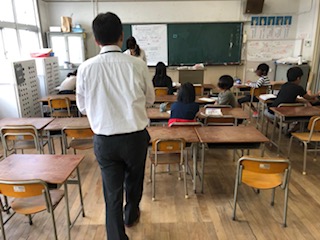 大阪市では学力の向上を図るため、教育センターの指導担当が各学校を訪問して授業を参観して指導を行っています。