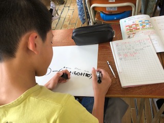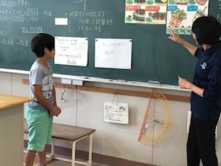 算数で「計算のやくそくを調べよう」の学習をしました。子どもたちは自分の考えを書いて発表しました。この授業は公開授業として教職員が参観しました。