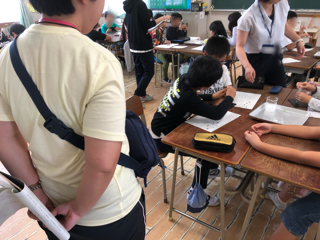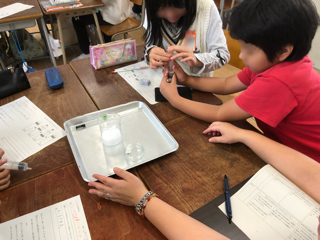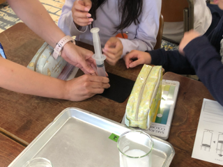 「とじこめた空気を押したとき、空気はどうなるのだろうか。」の学習を行いました。班で注射器を使っていろいろな実験をしました。公開授業として行い、教職員が参観しました。