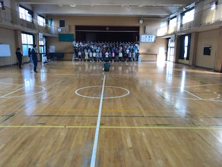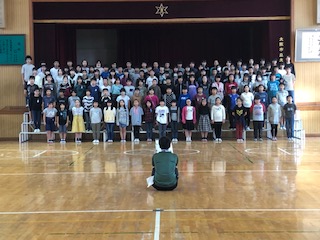 創立40周年記念式典には5年生と6年生が児童代表で参加します。よびかけの言葉や歌を練習しました。