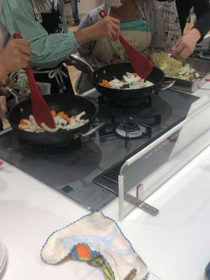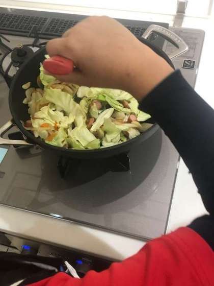 エコクッキング。キャベツの芯やピーマンのへたも炒めます。