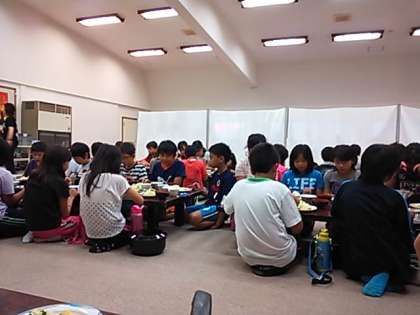 2日目、朝ご飯です。今日の活動に備えて、しっかりと食べよう!