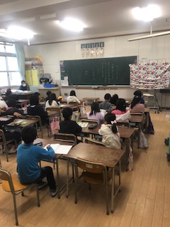 子どもたちは教室で静かにしっかりと放送を聞いていました。