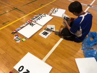 金曜日の作品展開始に向けて準備が進められています。タイトル作成や作品の搬入などで講堂もあわただしくなっていています。