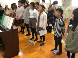 昼休みに地域のコーラスの方々と希望する子どもたちが一緒に練習しました。