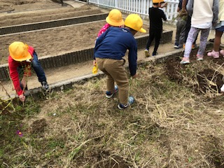 学習園の草抜きをしています。この後にはチューリップの球根を植える予定です。