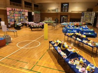 作品展の準備がほぼ整いました。作品はぜひ会場でご覧ください。また、会場は土足禁止となっていますので上履きをご用意ください。