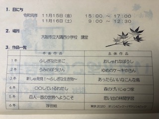 作品展となりました。公開日時は本日15日(金)15時〜17時と明日16日(土)9時〜12時30分です。