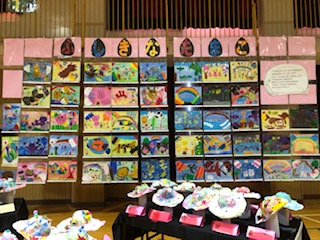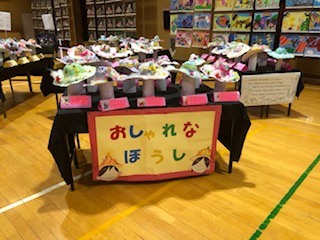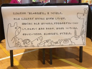 1年生は絵・ふしぎなたまご、工作・おしゃれなぼうしです。思わずかぶりたくなるぼうしです。