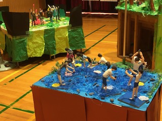 ていねいに切って作った百人一首の世界へようこそ、粘土・思い出の林間学習です。いろいろな行事が表現されていて楽しかった林間学習がよみがえってきます。