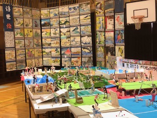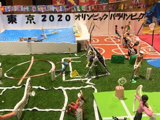 6年生は浮世絵、粘土・東京2020オリンピックパラリンピックです。並んだ浮世絵は日本の風情を感じます。粘土の作品を見て来年の大会に思いをはせます。