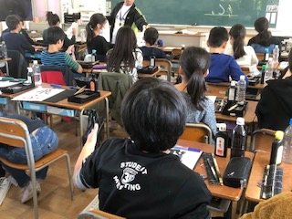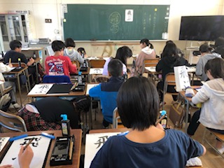 6年生は国語の書写を学習しました。飛の字をていねいに書いています。