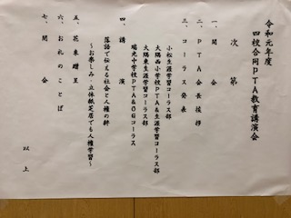 本日、瑞光中学校で、瑞光中学校下四校PTA教育講演会がありました。四校地域のコーラス部のコーラスがあり、休憩をはさんで落語家の桂米平師匠による「落語で伝える社会と人権の絆」を演題とする講演と落語、立体紙芝居をお聞きしました。