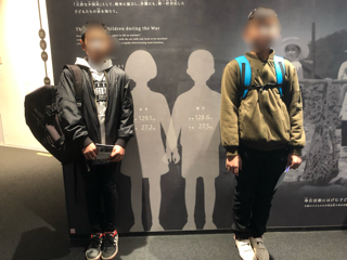戦争当時の小学校6年生の平均身長を表すパネルがありました。当時と今の子どもたちの身長の違いがよくわかります。
