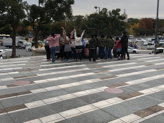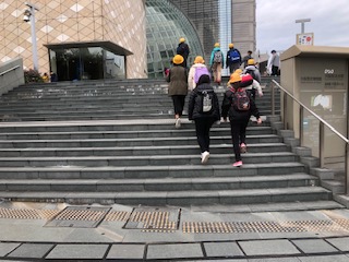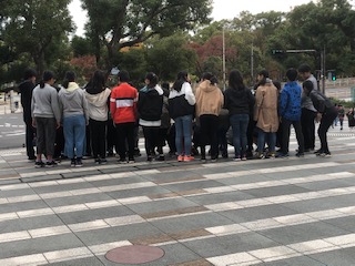 大阪歴史博物館に着きました。クラスごとに写真を撮りました。