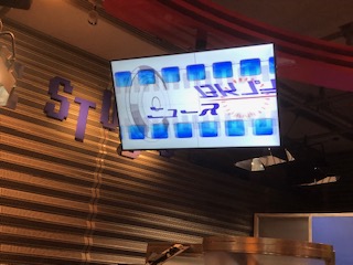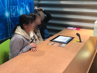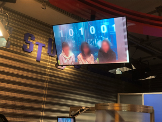 三人がアナウンサーとなり、ニュース番組の体験をしています。
