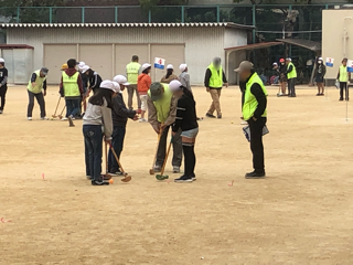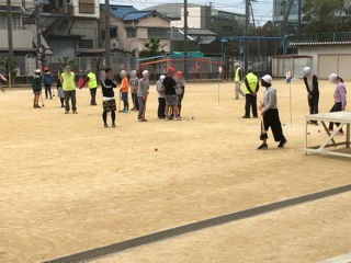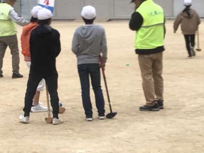 6年生も地域の方とグランドゴルフを楽しんでいます。