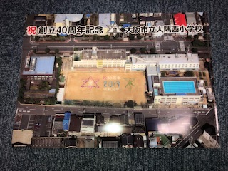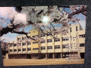 記念品の4.クリアファイルです。表面が人文字、裏面が桜と校舎と校歌になっています。