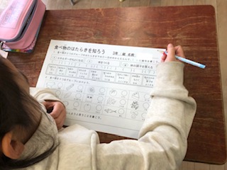 3日の5時間目に3年生で食に関する指導を行いました。食べ物のはたらきを知ろうをめあてに学習を進めました。食べ物が栄養素のどのはたらきをするのかを考えました。