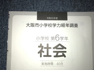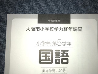 大阪市立小学校の全校で「学力経年調査」を3年生から6年生で実施しました。本日、5日(水)は国語科と社会科を行いました。