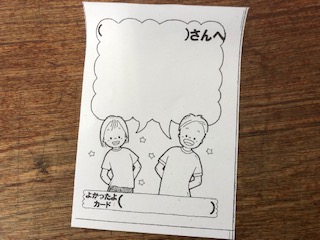 朝によかったよカードを書く時間を設けました。友だちのいいところを見つける取り組みを進めています。