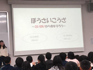 1・2年、3・4年、5・6年生に分かれて大経大で防災学習を行いました。