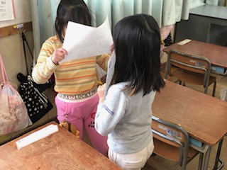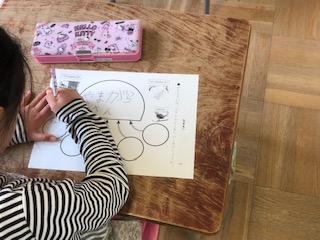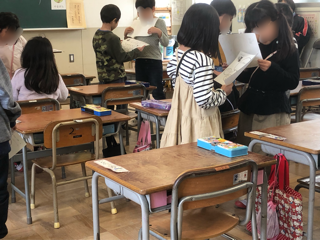 考えを書く用紙を工夫して、書いた後に友だちと考えの交流をしました。