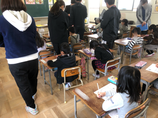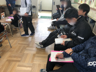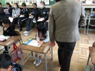 本校の教員が参観しました。指導講評をいただく他校の校長も授業をご覧になっています。