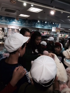 鳥羽水族館でお土産を買っています。
