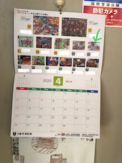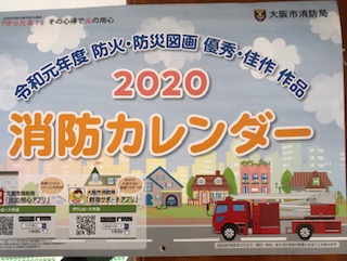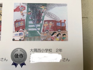 防火・防災図画で表彰を受けた児童の絵が、2020年の消防カレンダーに掲載されました。4月の欄の緑色の矢印の絵です。