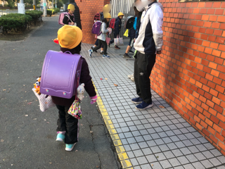教職員も登校を見守っています。玄関で子どもたちを迎えています。自転車で校区を巡回している教職員もいます。
