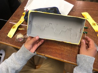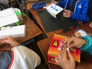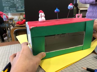 ティッシュの箱を使ってクランクの仕組みを応用した工作に取り組んでいます。