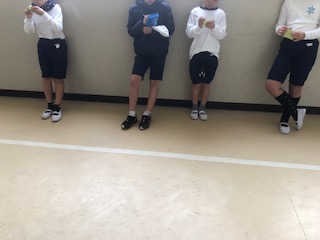 児童会の代表委員会の子どもたちがきまりを守ろう週間の取り組みとして、きまりを守っている様子を見てほめる活動に取り組んでいます。