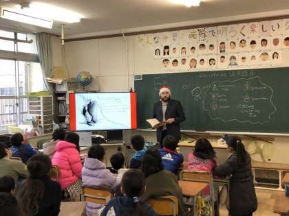 5年生の外国語学習の様子です。英語を話す先生がサンタクロースの姿を見せておられました。
