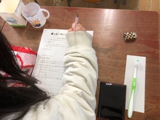 フッ化物塗布の前にむし歯や歯周病の予防の大切さ、ていねいな歯磨きの仕方などを歯科衛生士の方に教えていただきました。