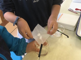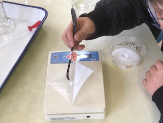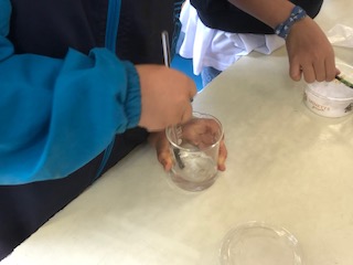 1gずつ計って水に溶かしていきます。班で協力して進めていきました。