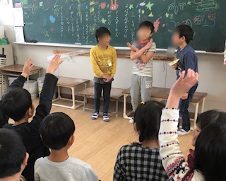 2年生は運動場でリレーで大歓声を上げた後には教室でお楽しみ会を楽しみました。