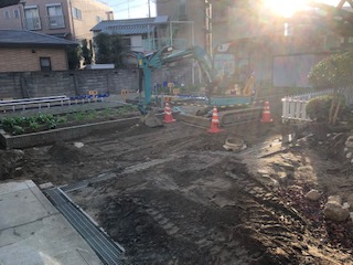 屋上タンクからの配水を廃止して、プール以外全ての校内水道を直接水道管から配水することになりました。2月頃まで水道管増設の工事をします。中庭の池から学習園にかけてが工事エリアとなります。