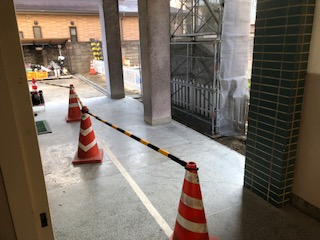 安全を期すため、工事エリアへの立ち入りを禁止し、東階段と1階トイレを使用しないようにしています。
