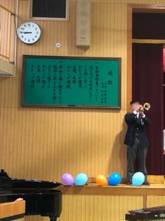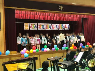 大隅西ふれあいまつりは、小学校の卒業生によるトランペットのファンファーレでスタートしました。その後、生涯学習、PTA、小学生の親子コーラスと続きました。