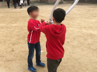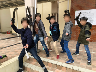 バルーンアートで作られたものをライトセーバーや刀代わりに遊んでいます。