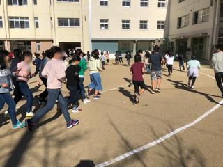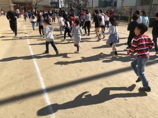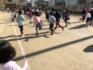 晴れ間が出てとても暖かくなってきました。かけ足週間として運動場で元気に子どもたちが走っていました。
