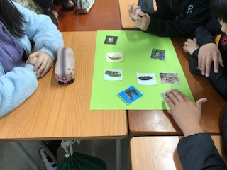 2組は理科の授業体験でした。生き物のつながりをゲームを取り入れた方法で学びました。