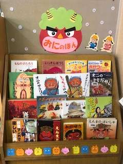 学校図書館には節分にちなんだコーナーなどが設けられています。