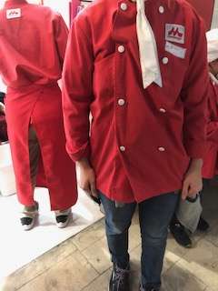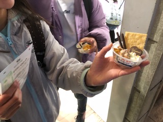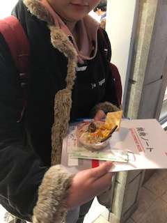 お菓子を作ります。制服が似合っています。おいしそうなお菓子ができて大喜びです。