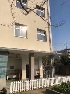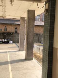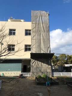 屋上タンクからの給水を水道管直結に切り替える工事が完了しました。校舎の足場なども撤去されました。
